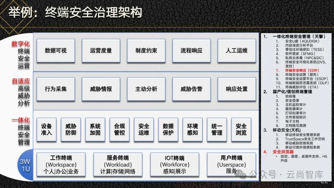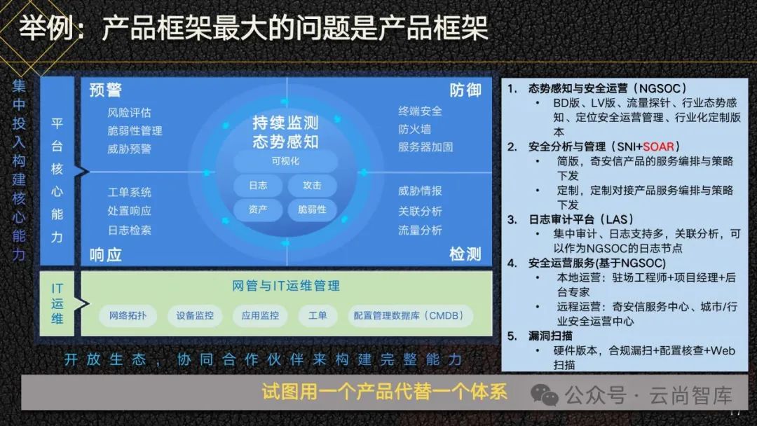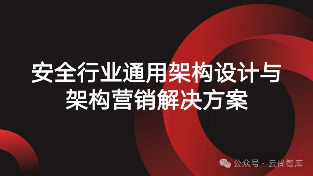 今天小编,分享安全行业通用架构设计与架构营销解决方案,希望给您工作和学习带来帮助,完整PPT已上传至知识星球“云尚智库”。