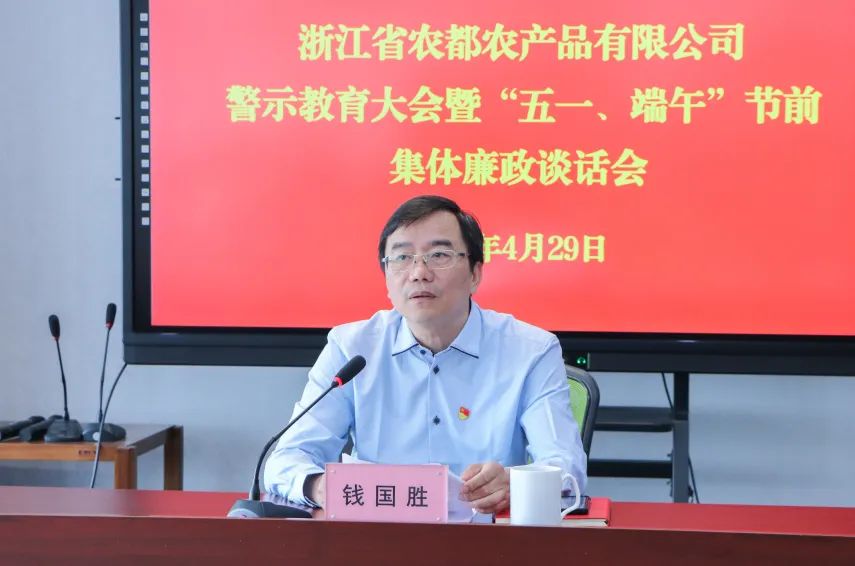 4月29日,农都公司召开警示教育大会暨“五一、端午”节前集体廉政谈话会,公司党委书记、董事长钱国胜出席会议并作集体廉政谈话,公司领导班子、子公司班子成员及公司全体党员参加会议。