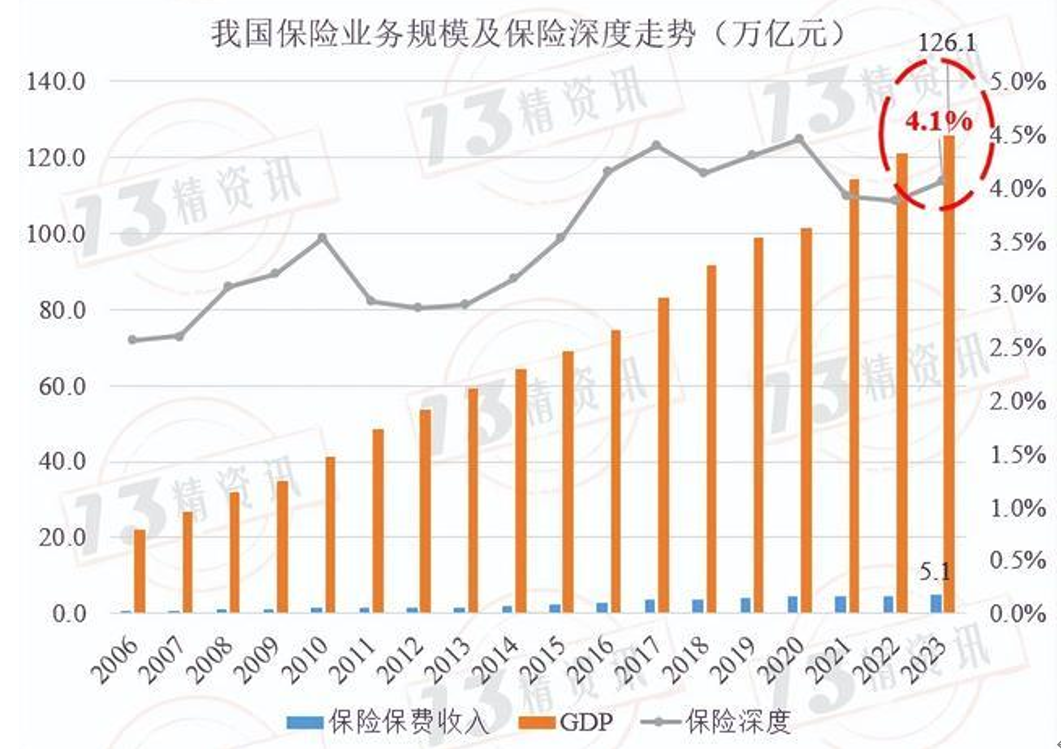 2023年我们国家的保险深度为4.1%。