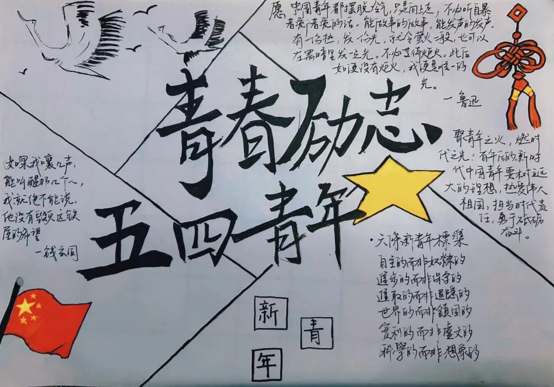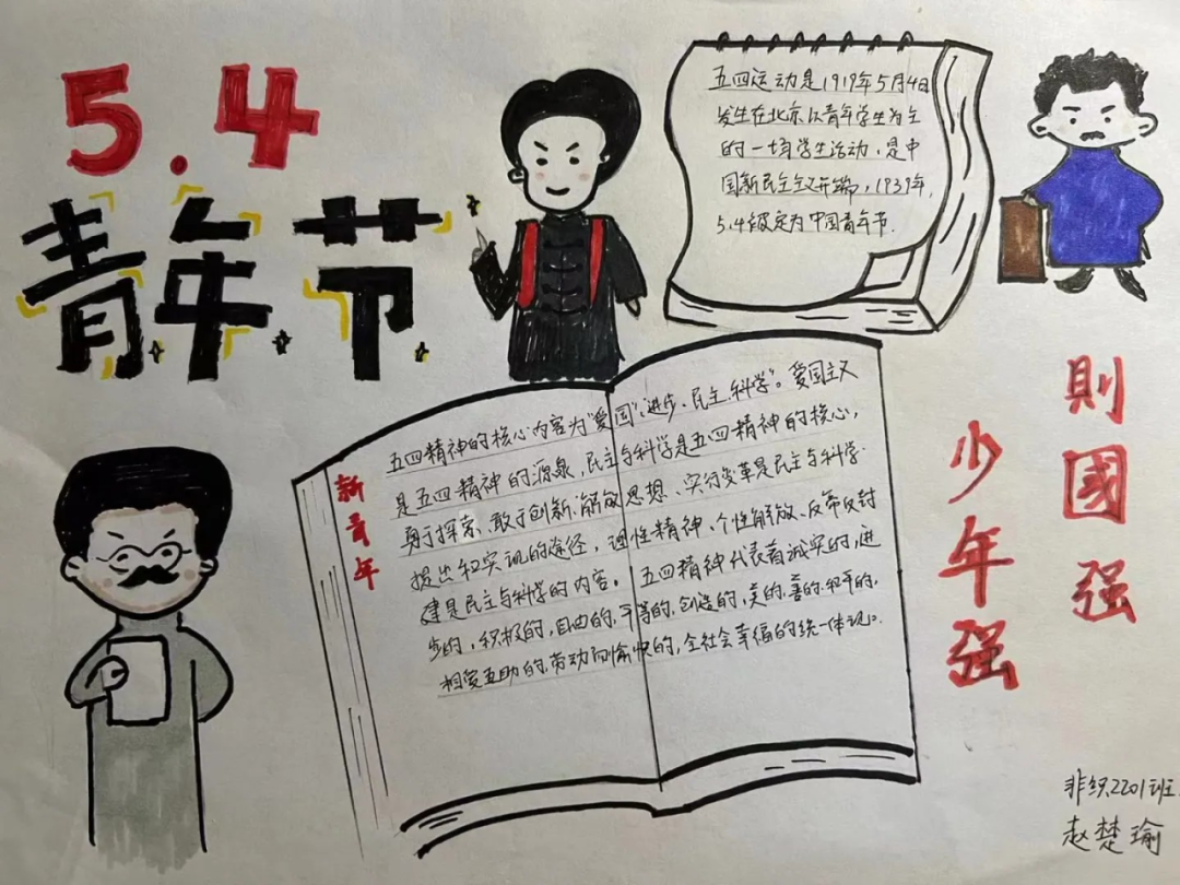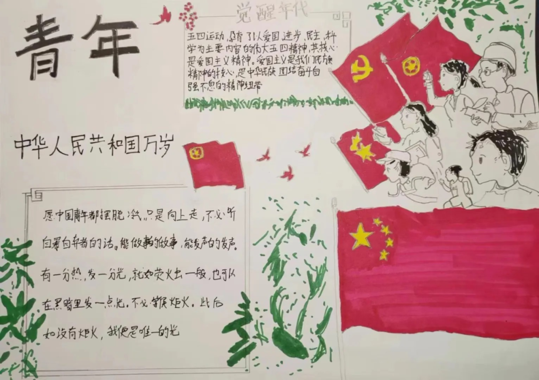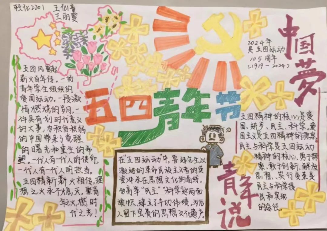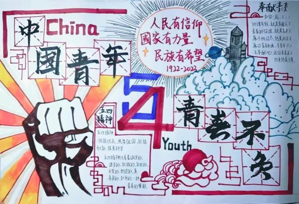 1919年的五四爱国运动是中国新民主主义革命的开端。为纪念五四运动,1949年12月,中国中央人民政府政务院正式宣布五月四日为中国青年节。以“爱国、进步、民主、科学”为核心的五四精神在新时代也被赋予了新的内涵。纺织科学与工程学院的团员和青年为传承和弘扬五四精神,号召广大青年积极奋进、砥砺前行,绘制了精美的手抄报,让我们一起欣赏一下他们的作品吧!