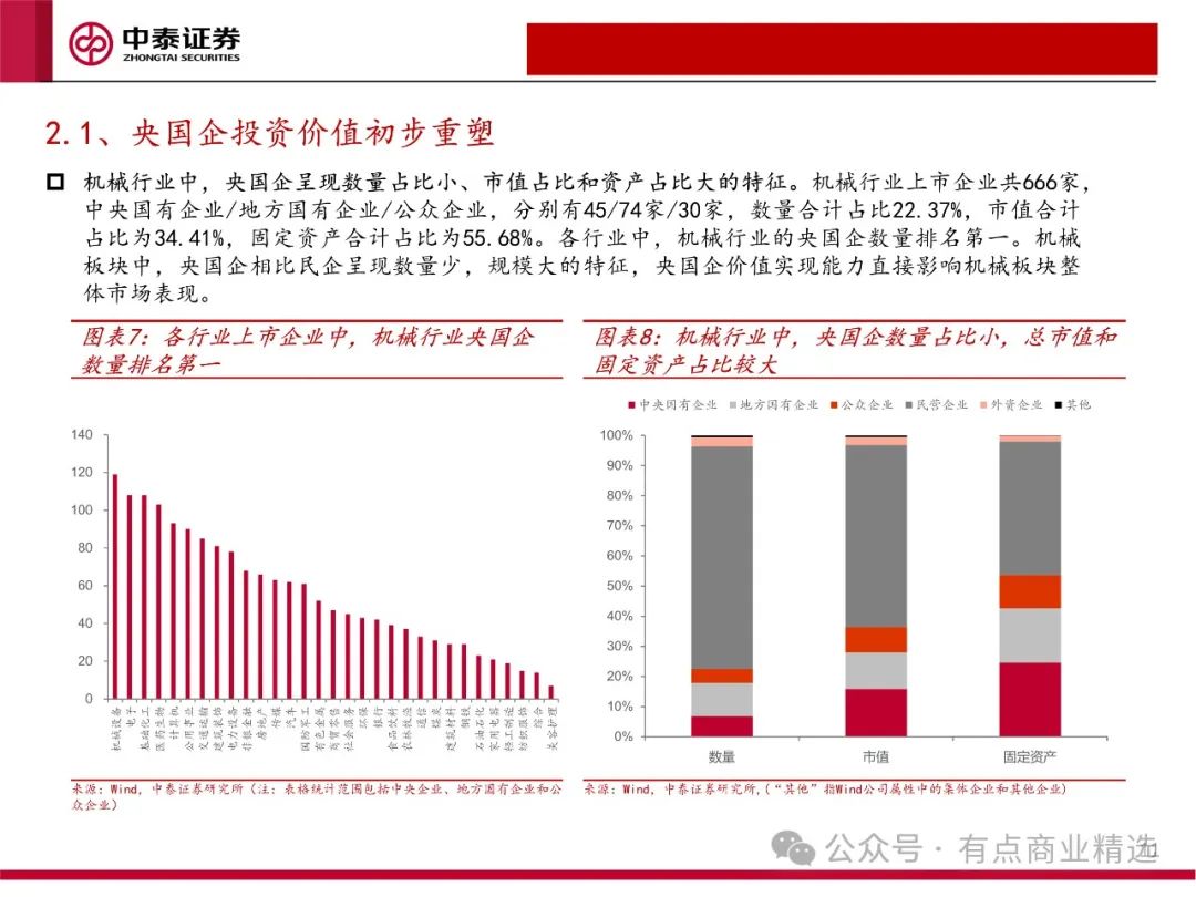 加强对企业市值管理的指引和监管,看好机械板块央国企内在价值提升与市场表现。央国企投资价值愈加受到市场关注,国改背景下,可以从五点逻辑梳理机械板块央国企估值模型的重塑。其中包括基本面因素、科技创新因素、市值管理因素、整合重组因素和ESG因素共五点逻辑。