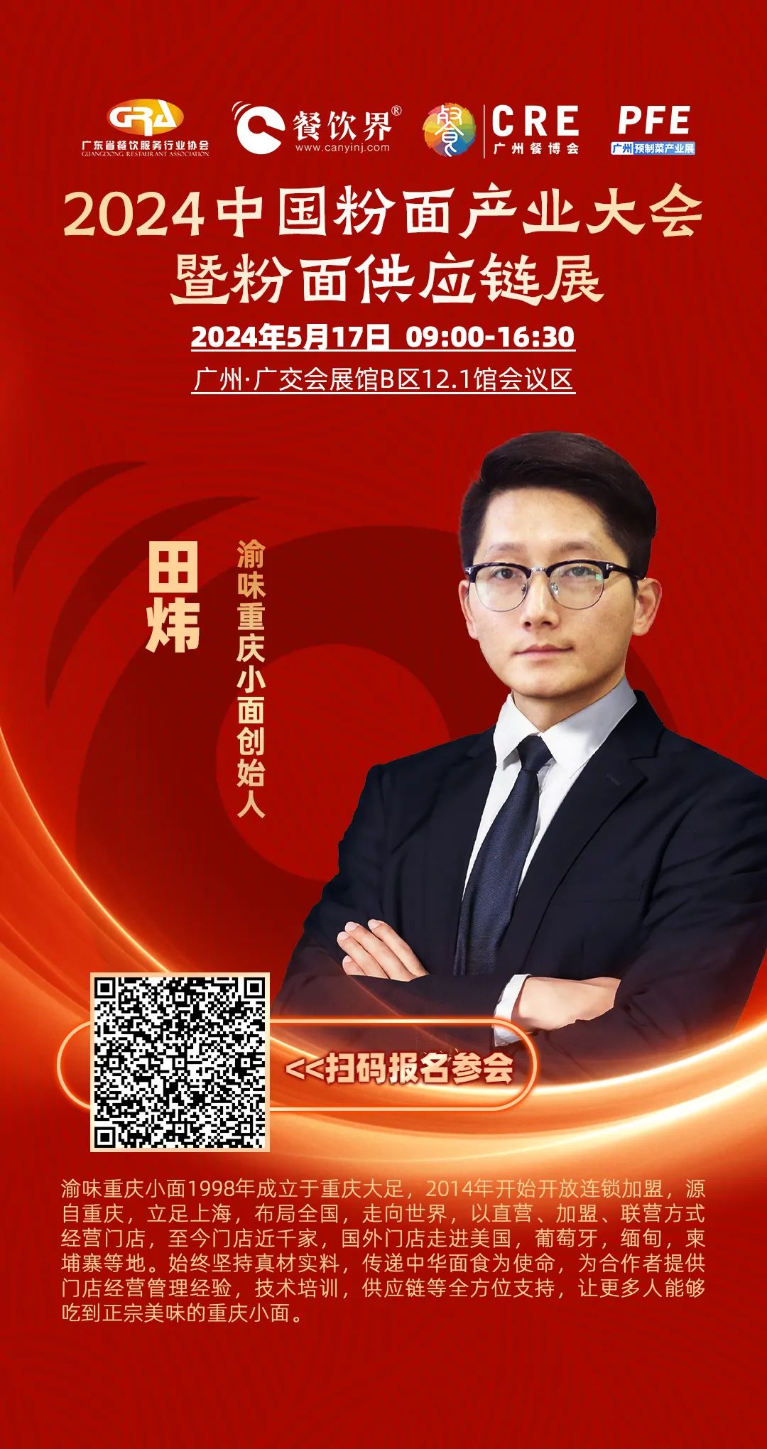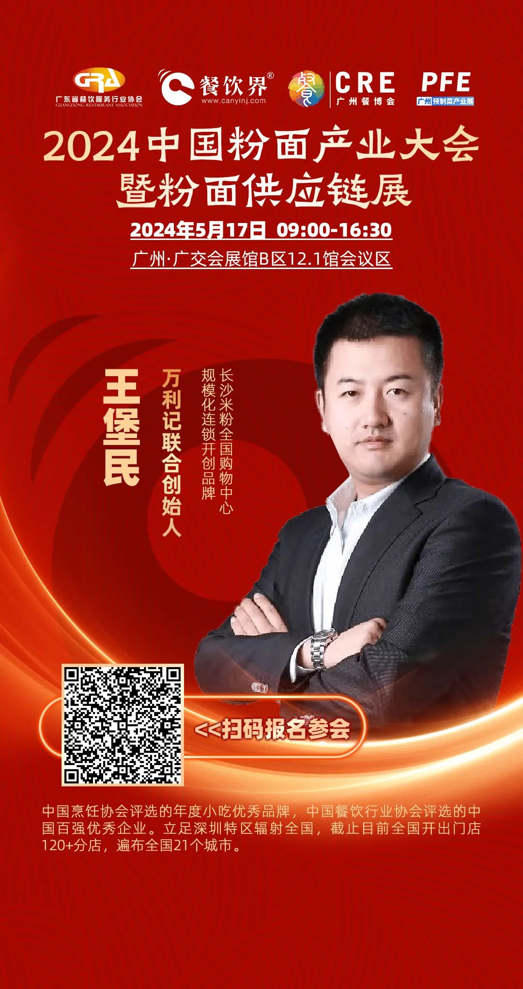 5月17日,广东省餐饮服务行业协会携手《餐饮界》新媒体打造“中国粉面产业大会”,大会将定向邀请超300+餐饮行业人士将汇聚一堂,一起探讨价值回归下的粉面产业经营和破局之道。