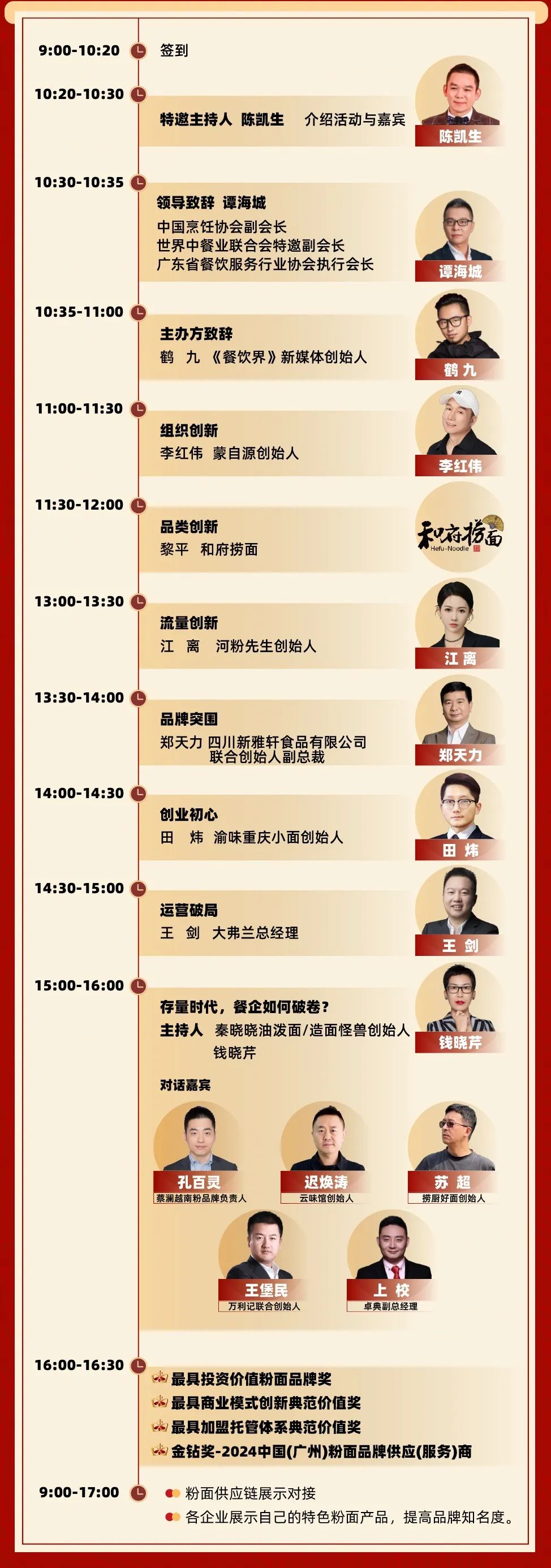 粉面产业的企业家、供应商、经销商、行业专家、投资机构代表等。