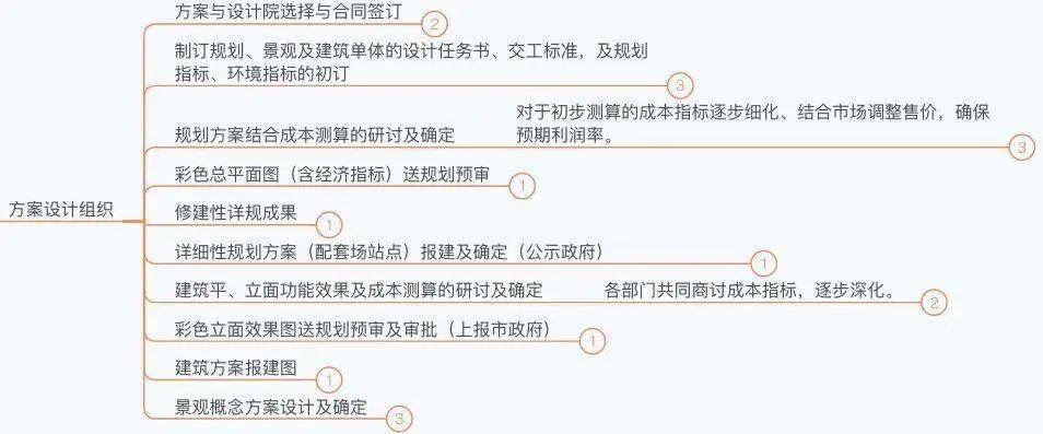 土地获取环节分为:获取土地阶段和规划设计阶段,两者没有先后顺序之分,有时候是有了想法后,先出一稿概念规划方案打动政府,进而获取土地;有时候是土地挂牌出让取得了之后,再有具体的想法后,才启动规划方案的设计。