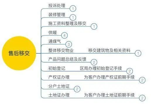 最后一个环节,就是售后移交啦,其中牵涉到物业公司,后续运营公司等。