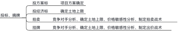 3、拍卖。需进行竞争对手分析、确定土地上限、价格分界、制定拍卖战术;