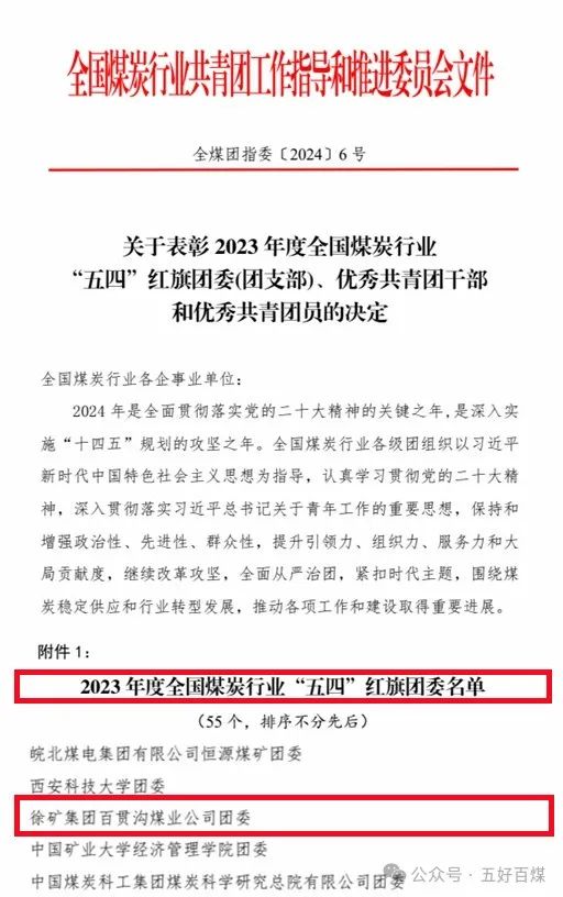 喜报!公司团委荣获“全国煤炭行业'五四'红旗团委”荣誉称号!