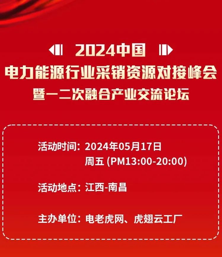5月17日,由电老虎网、虎翅云工厂主办的“2024中国电力能源行业资源对接峰会暨一二次融合产业交流论坛”,即将在江西南昌隆重举办!