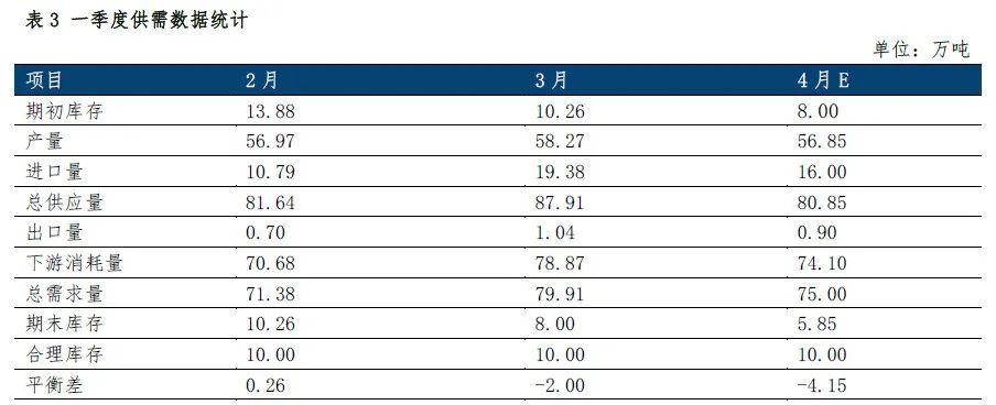 从需求数据来看,下游需求逐步进入淡季,终端采购积极性下降。预计4月份市场整体刚需略有减少,整体需求约75万吨,环比减少6.14%。