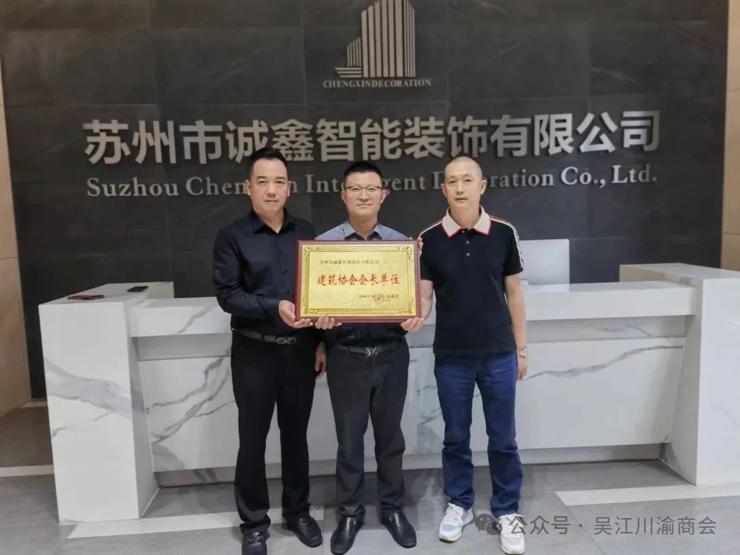 最美人间五月天,创新发展谱新篇。5月4日,苏州市吴江区川渝商会(以下简称吴江川渝商会)建筑协会正式成立,苏州市诚鑫智能装修有限公司何国兵董事长当选吴江川渝商会建筑协会会长,吴江川渝商会冯寒荣誉会长、廖海军会长为商会建筑协会何国兵会长授牌。商会总顾问吴志祥、金融高级顾问黄波、文化高级顾问周德强,建协办主任夏文欣等参加授牌活动。