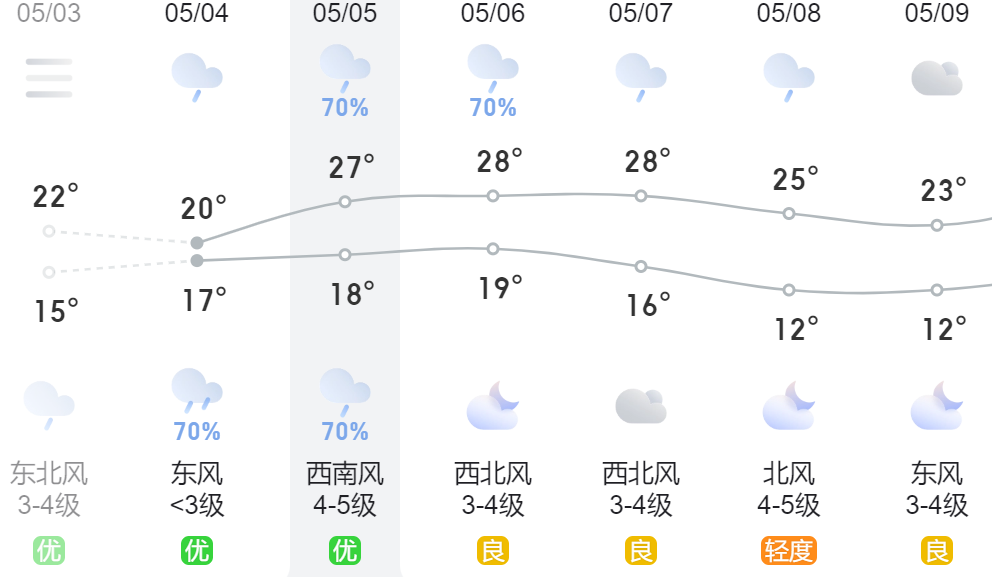 今日小雨,气温18-27度,西南风4-5级,出门请带好雨具。
