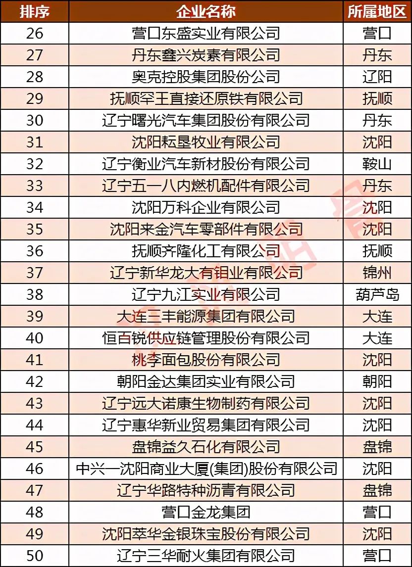 恒力石化(大连)有限公司、辽宁忠旺集团有限公司、鞍炼集团有限公司、海城市后英经贸集团有限公司、东软集团股份有限公司5家民营企业,分别排名第11至第15;锦州万得汽车集团有限公司、沈阳三生制药有限责任公司、沈阳远大企业集团、大连万蓝利石油销售有限公司、三一重型装备有限公司5家民营企业,也跻身辽宁省民营企业20强。