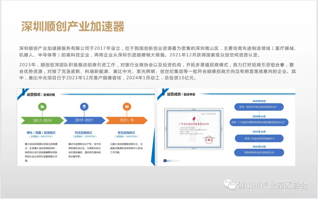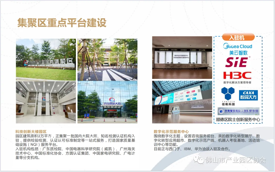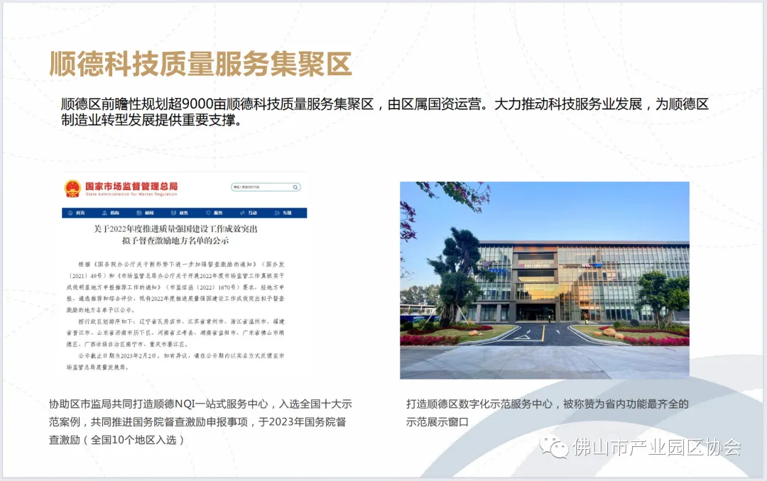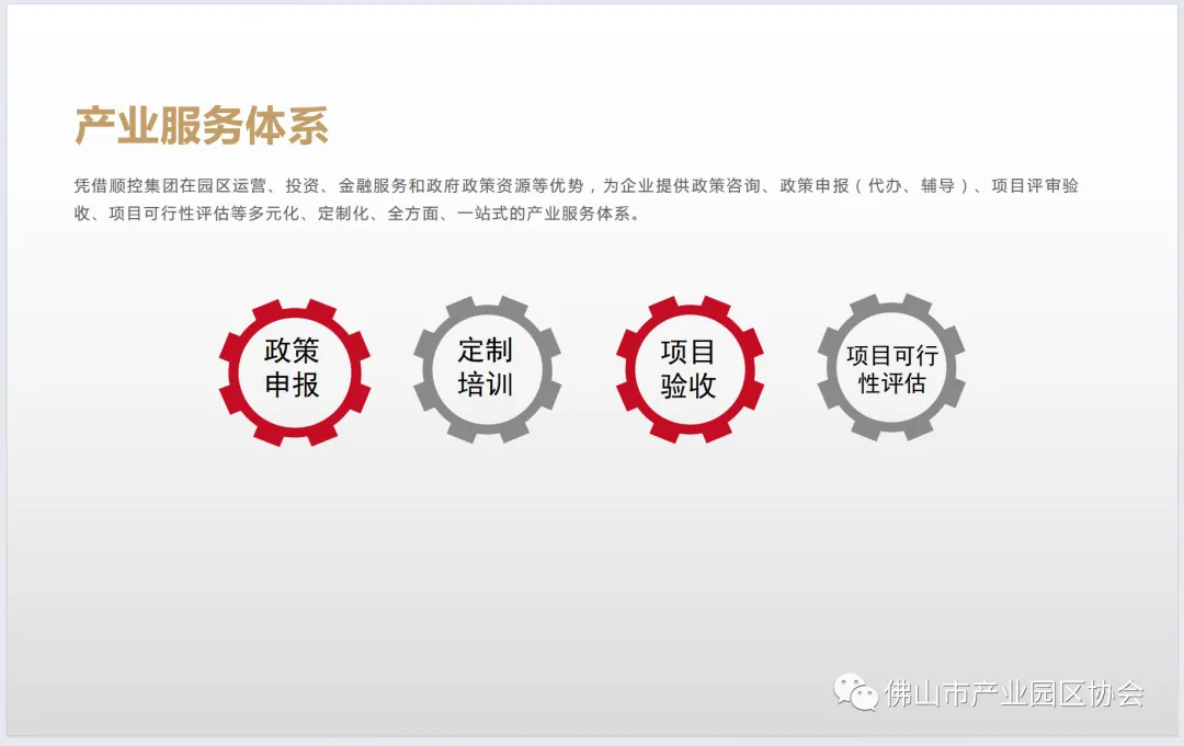 在数字化转型升级的驱动下,园区正在建设智慧园区,剑指数字化示范标杆产业园;园区也在致力于打造绿色低碳示范标杆产业园。同时作为粤港澳大湾区对德合作门户,园区被佛山中德工业服务区(三龙湾)管委会授予“德国中小企业孵化加速器”的称号,今后将作为载体服务平台,积极对接和引进德国的先进制造企业入驻。园区目前已荣获广东省村镇工业集聚区升级改造示范项目、省重点项目、佛山制造业当家干部教育培训基地现场教学点、佛山市职业健康示范园区、佛山市重点项目建设标兵、德国中小企业孵化加速器等称号。