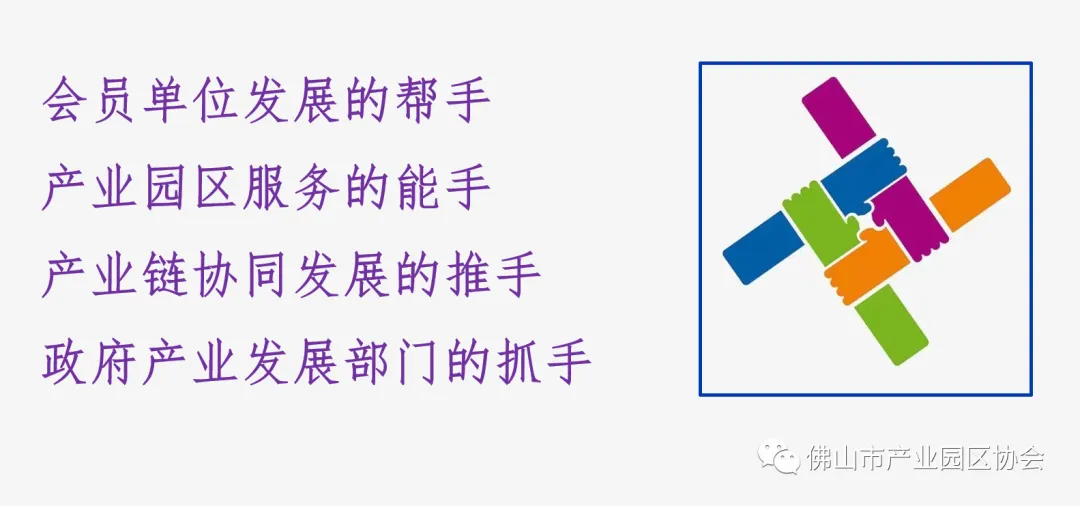 佛山市产业园区协会旨在通过聚合佛山产业园及产业园相关投资、规划、招商、运营及服务机构与企业等会员单位,为会员单位建立以园区企业、高校及科研单位、商协会及产业智库专家及学者、服务机构等为主体的产业资源库,通过产业资源库整合产业链创新要素资源,为佛山市产业园区提供全方位产业创新服务,促进佛山市传统产业园区转型升级、高质量发展、塑造知名园区品牌,为加速推动建设在全球有影响力的国家制造业创新中心、布局谋划与建设战略新兴产业与未来产业发展提供强有力的产业载体支撑与创新服务支撑。