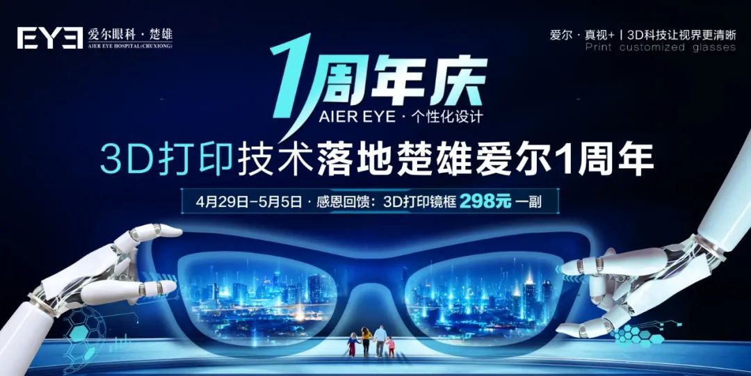 2024年5月1日-5月5日,楚雄第二届国际眼镜展览会将在楚雄爱尔眼科医院盛大举行。这也正值3D打印眼镜进入楚雄一周年,届时医院内将有CK、雷朋、浪特梦等众多国际大牌眼镜及近视防控黑科技产品展示。还有超多惊喜折扣送给大家~