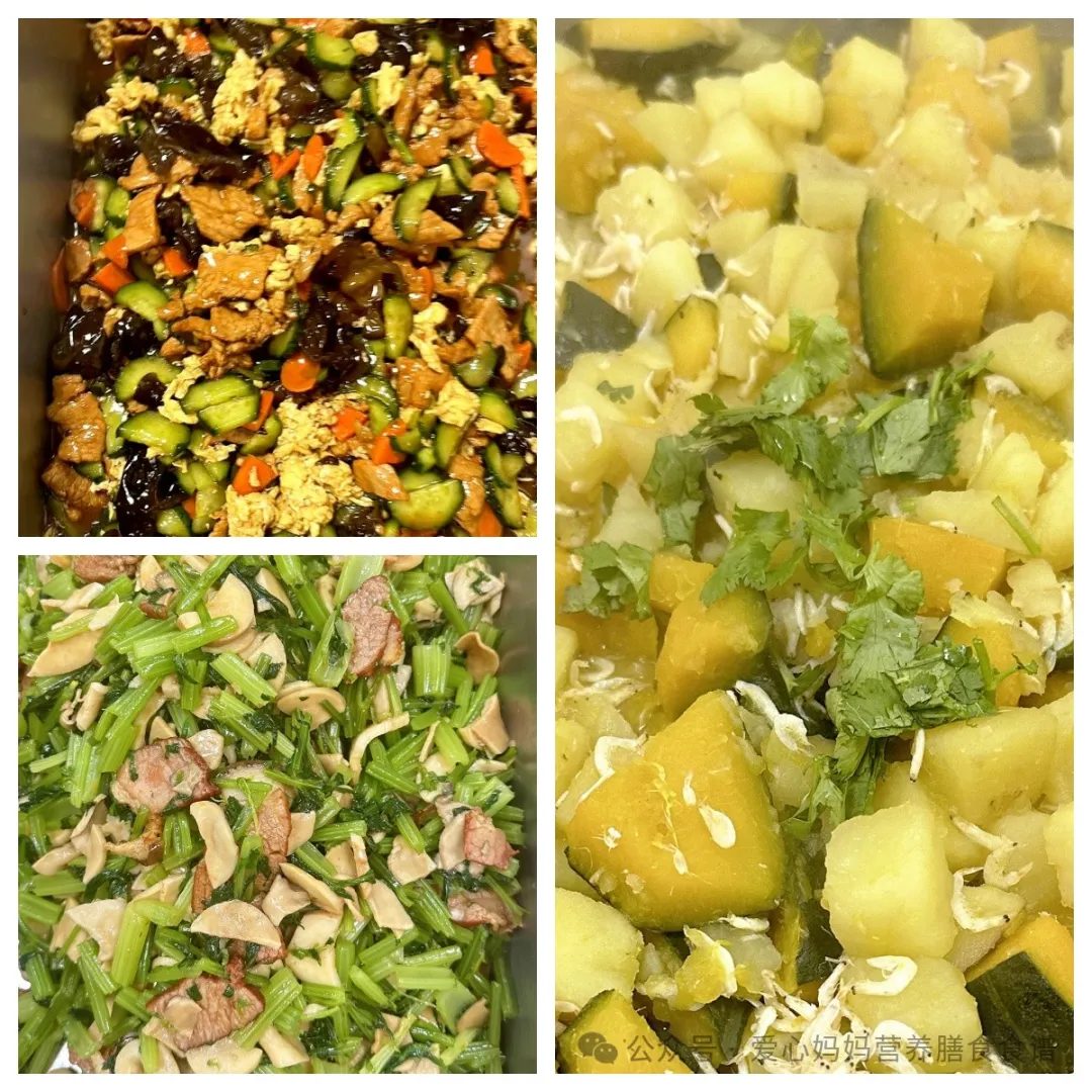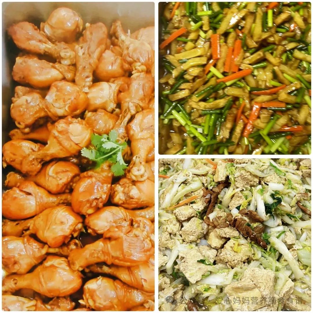 副食 小鸡炖蘑菇 肉沫酱茄条 笨豆芽炒韭菜干豆腐丝