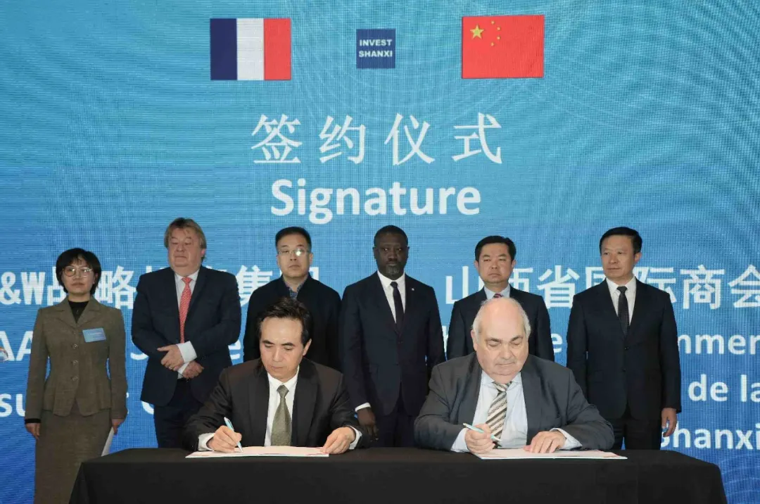 在中法嘉宾的见证之下,鹰投资本与山西际安电气有限公司,法国恒通集团与山西亚鑫能源集团,AA&W战略投资集团与山西省国际商会分别签署合作框架协议、合作备忘录。