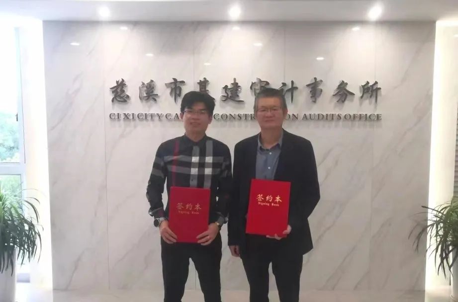 2024年4月24日,慈溪市基建审计事务所(以下简称为“基建审计”)与行行造价签订企业品牌库建设服务合作协议。行行造价销售经理杨煌慧、基建审计副所长沈立军共同出席了此次签约仪式。