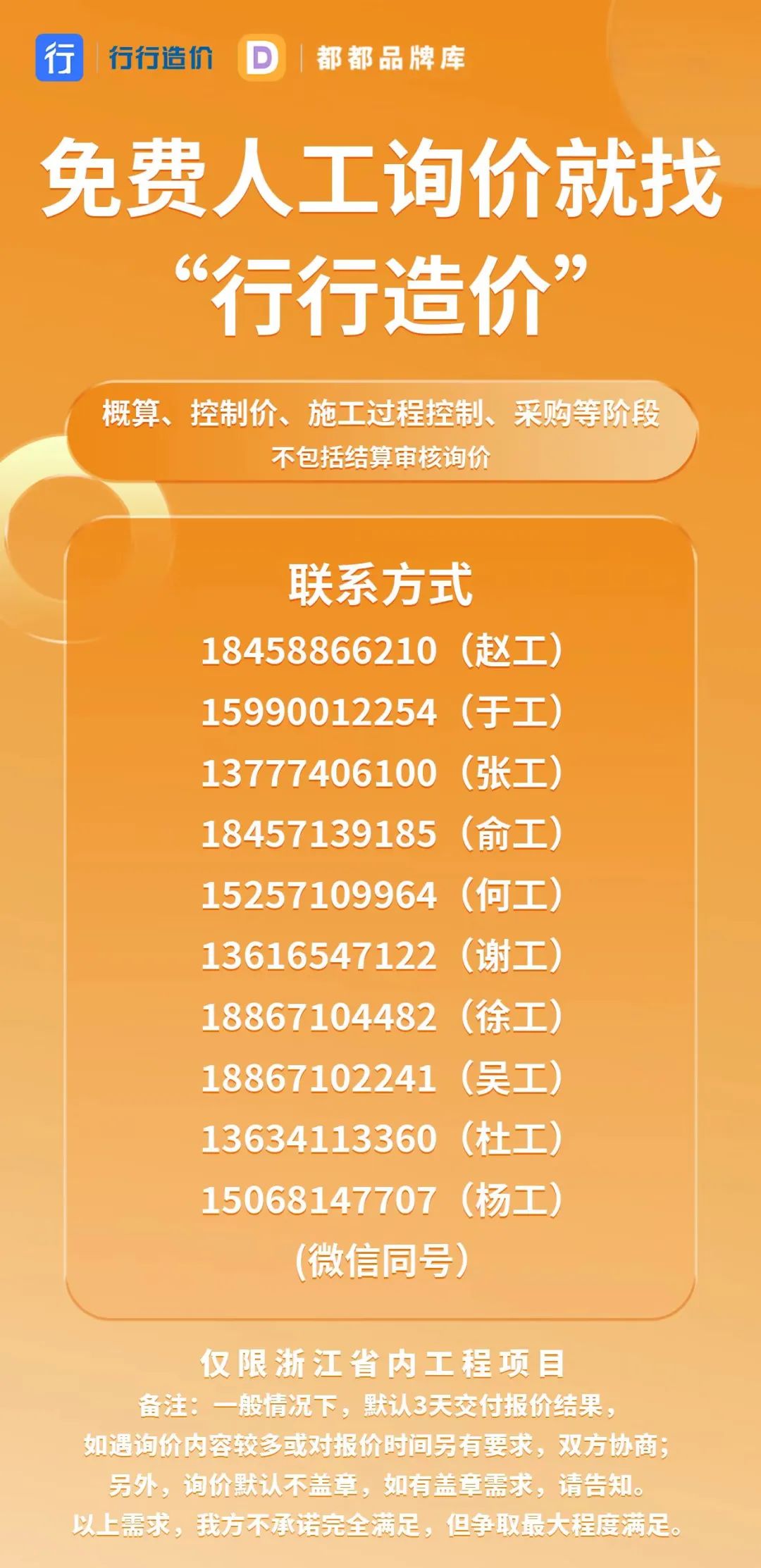 “都都品牌库”同时是一个询价系统,可以在品牌库供应商详情信息联系厂家或地区供应商进行询价。我们也提供免费人工协助询价工作,如有需求请联系下方号码(微信同号)。