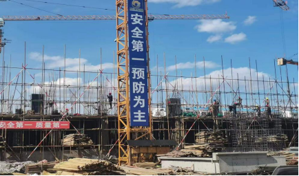 在海伦市棚改项目(海伦市紫金公馆住宅小区)工地施工现场开展搭建工作