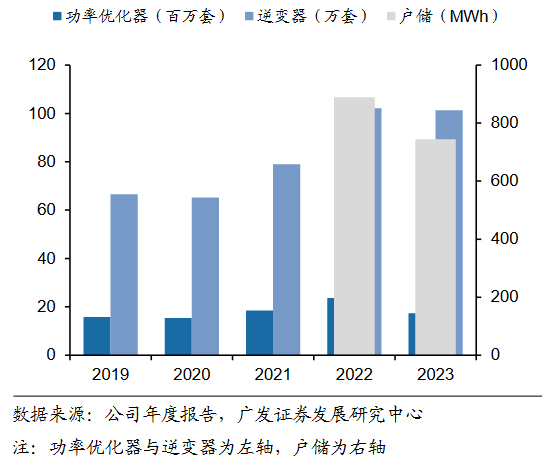 23年欧美市场需求受政策扰动影响较大,24年需求有望逐步释放。23Q1-Q4功率优化器出货640/550/330/220万套、逆变器出货33.0/33.5/27.4/7.4万台、储能电池包出货221/269/121/133MWh。23H2受终端需求放缓、渠道库存水平较高影响出货量环比大幅下滑。