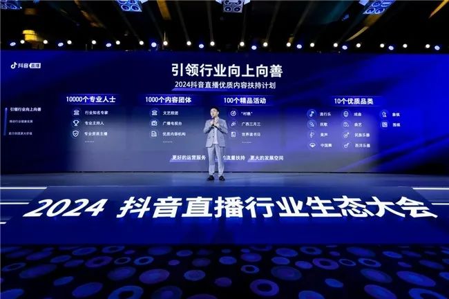 5月3日消息,2024抖音直播行业生态大会近日在京举行。会上,抖音直播发布优质内容扶持计划,宣布将提供亿级流量与现金,携手万名专业人士,带动千个内容团体,打造百项精品活动,扶持十个优质品类。
