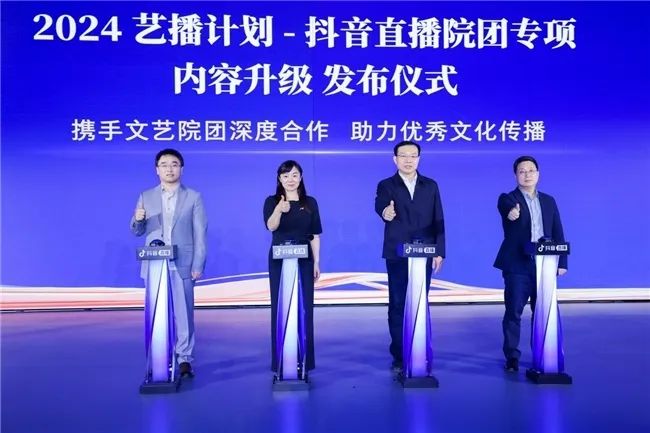 大会现场,“艺播计划-抖音直播院团专项”宣布进一步升级。抖音直播相关负责人表示,未来将额外投入20亿曝光的流量资源,加大对文艺院团扶持力度。此外,抖音直播还将与院团共同打造有影响力的IP活动,共创地方特色演出与热点内容,丰富大众生活、助力传统文化传承。
