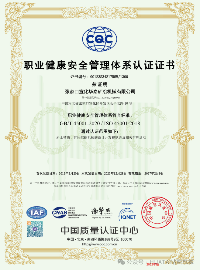 张家口宣化华泰矿冶机械有限公司自2000年成立以来,持续践行新发展理念,坚持数字赋能、科技驱动,致力于为国内外客户提供先进的地下矿山井巷凿岩机械设备及解决方案。近年来,公司在技术研发、产品质量、安全生产、节能环保等方面均取得了显著成效: