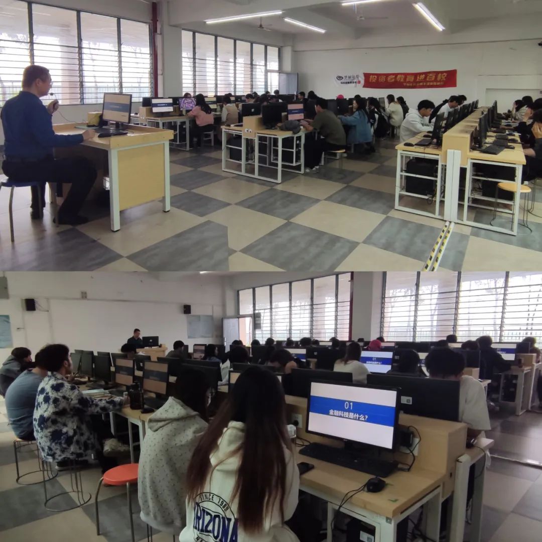 本次课程是《金融务实》系列选修活动的第五堂课,由泉州丰泽街证券营业部的余永铿老师主讲。余老师介绍了金融科技的基本概念、发展历程以及在证券行业的应用现状。他强调,金融科技作为传统金融与新兴科技深度融合的产物,正在深刻改变着证券行业的业务模式和生态格局。通过大数据、云计算、人工智能等技术的应用,证券行业得以实现交易流程的优化、数据分析与预测能力的提升,以及风险管理水平的改进。在活动的互动环节,同学们积极提问,就金融科技在证券行业的应用前景、风险控制等方面与讲师进行了深入的交流和讨论。余老师耐心解答,并分享了自己的见解和经验。