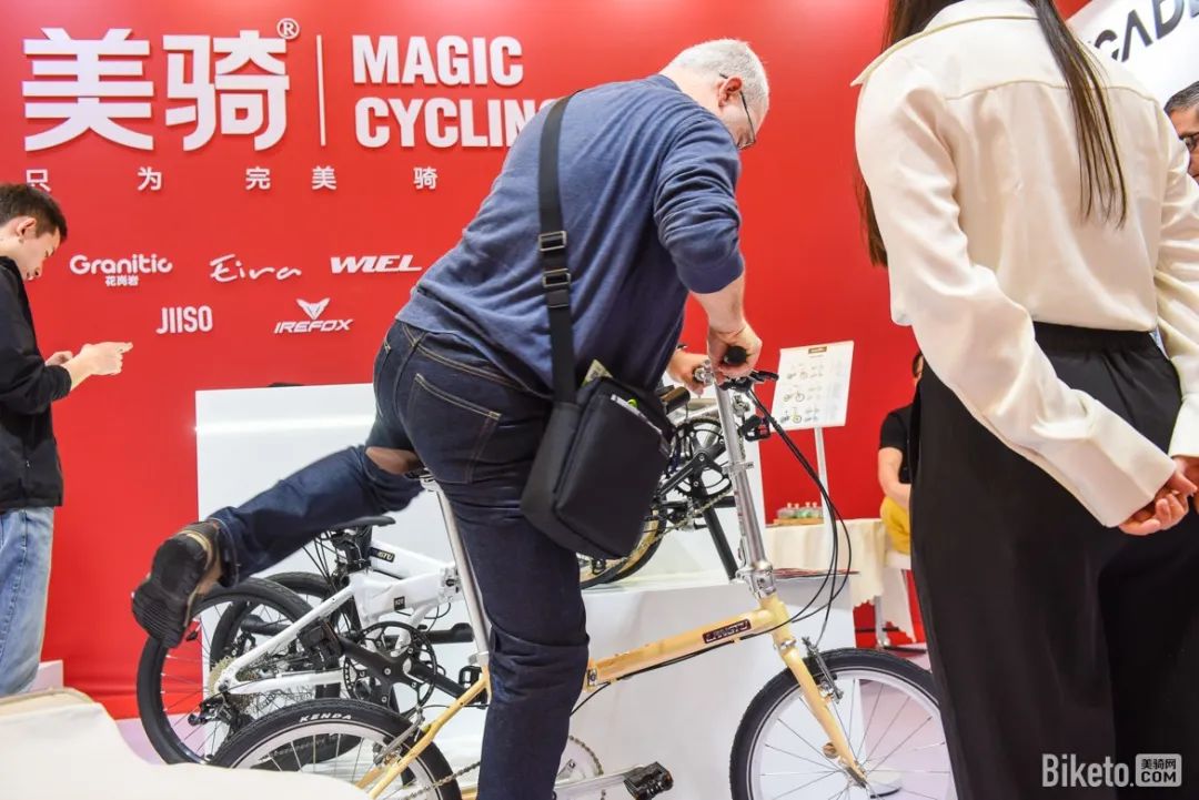 在2024年第32届中国国际自行车展览会上,美骑携丰富多样的自行车产品参展(展位号W1-0742),包括原机、火之狐、狼途、花岗岩、灰鸟、未来、极耐、隐速、美国鹰等品牌,涉及公路车、山地车、折叠车、电动自行车等多个系列,吸引了众多业界人士和骑行爱好者的瞩目。