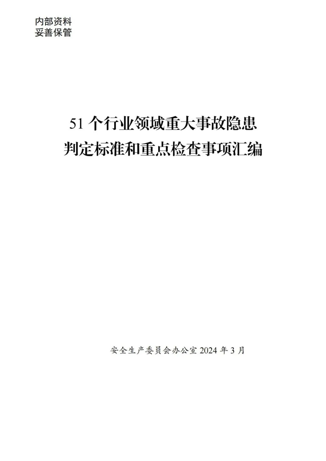 最新各个行业领域重大事故隐患判定标准和重点检查事项汇编!