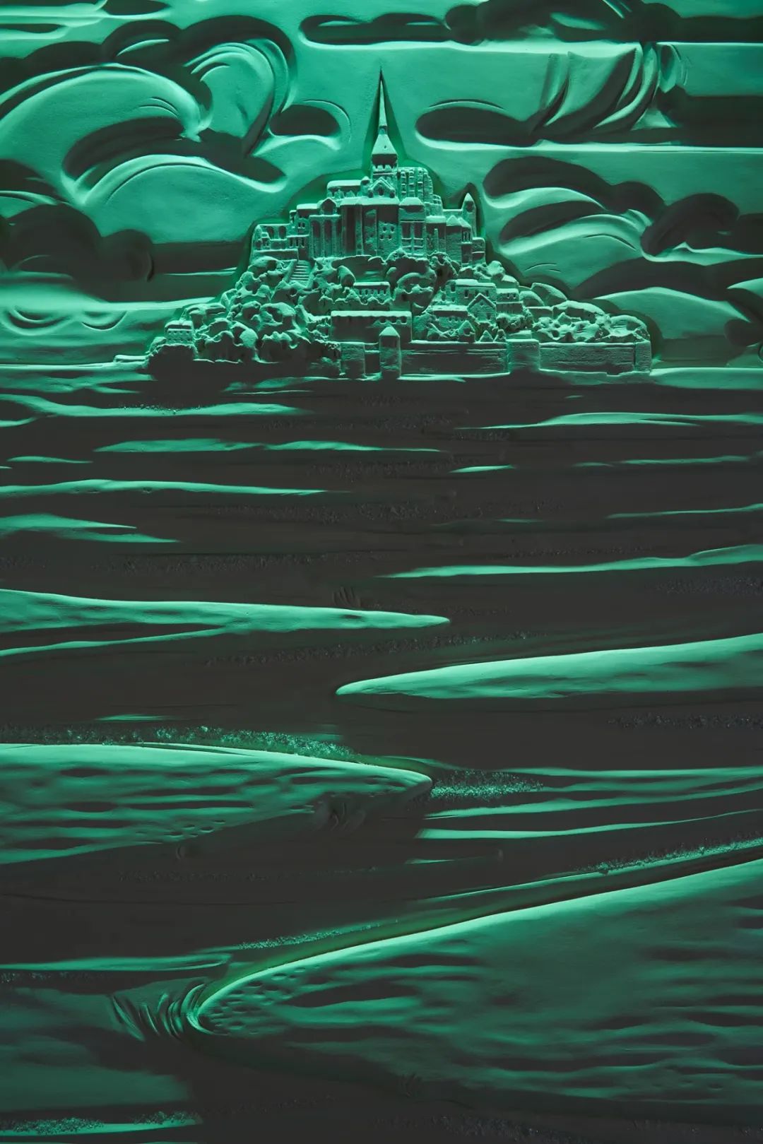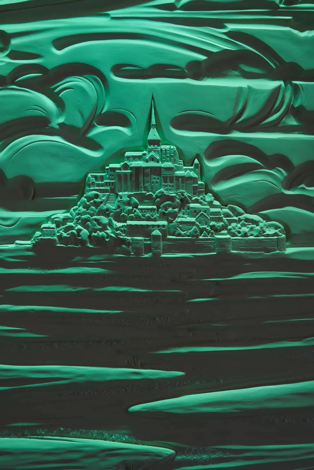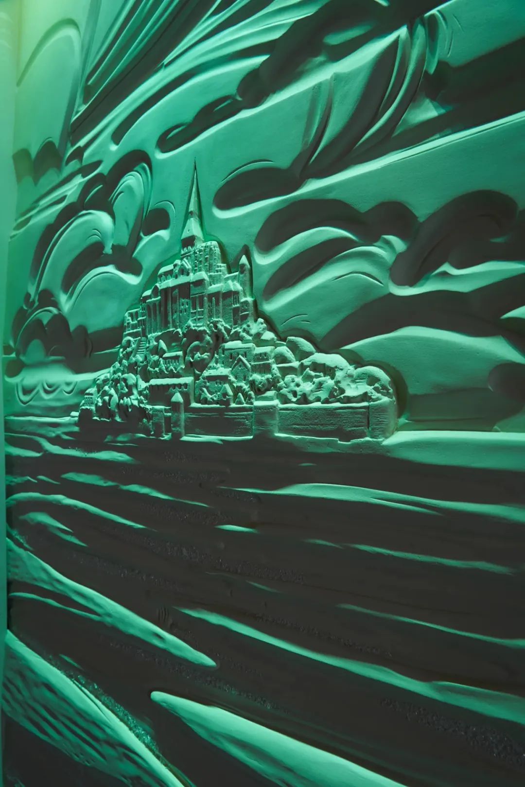 而由石膏制作的壁画则是对传统和诺曼底象征的致敬。它描绘了著名的圣米歇尔山城堡,这座城堡不仅是法国的历史文化遗产,更是传统与信仰的象征。壁画的存在提醒着我们,传统并不是束缚我们前进的枷锁,而是可以激发我们创新思维的源泉。