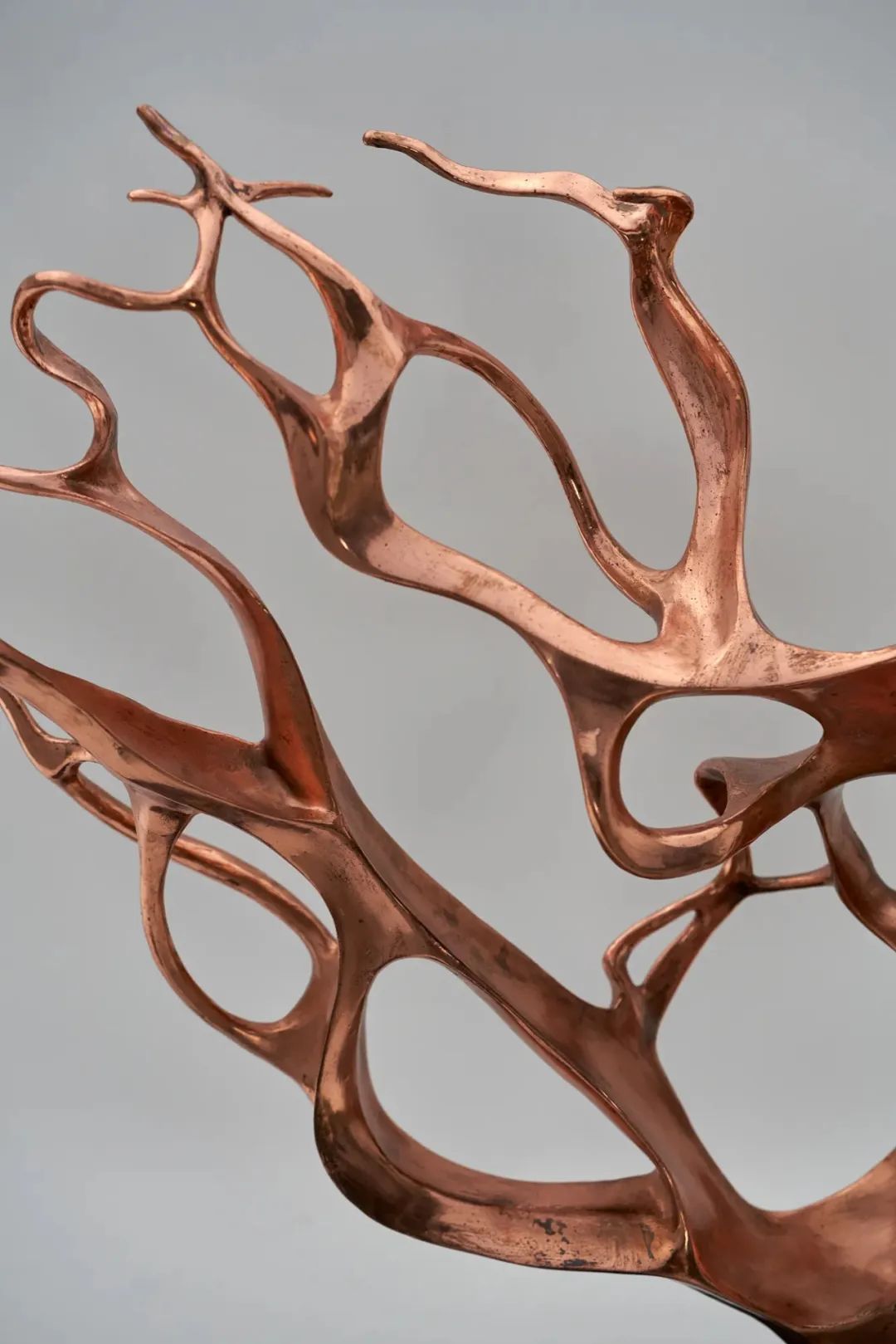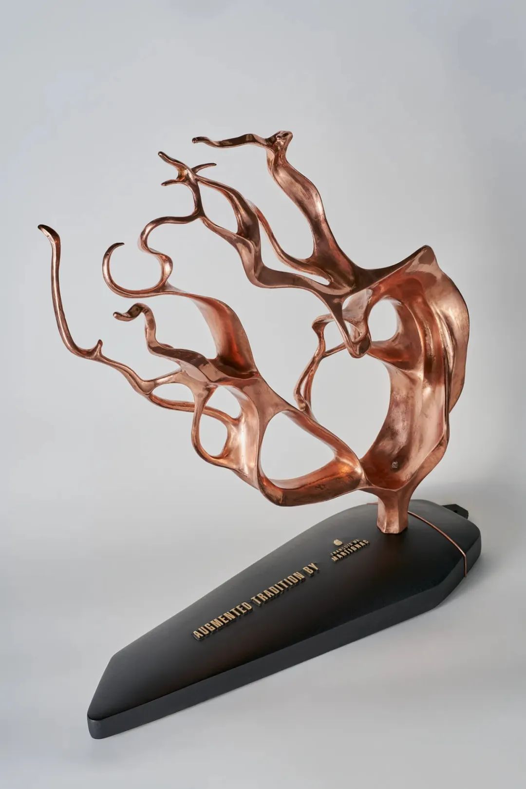 其中最为引人注目的装置是名为“生命形式”的物体。这是在人工智能的协助下构思而成的,融合了“海洋”、“自由”、“未来”、“自然”、“艺术”、“可能性”等多个概念。经过艺术家和雕塑家的精心打磨,最终呈现出的形式充满了幻想和未定义的可塑性,邀请着人们去探索和解读。它可能唤起树根、水下珊瑚、火焰或金属中不朽的水花等不同的联想,为每位观者带来了独特的视觉体验。