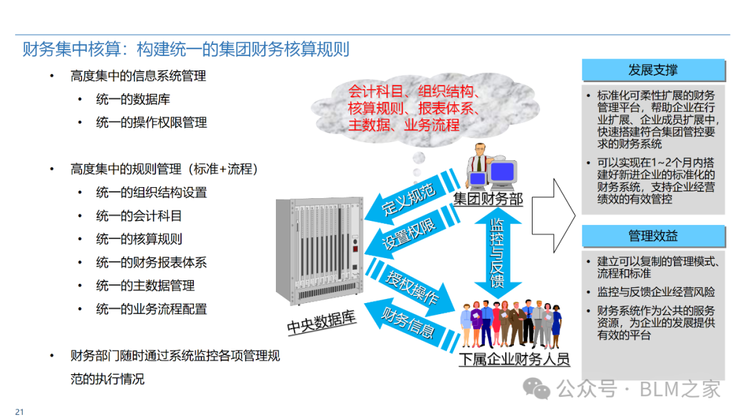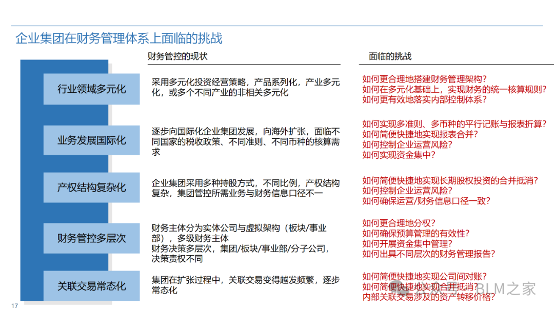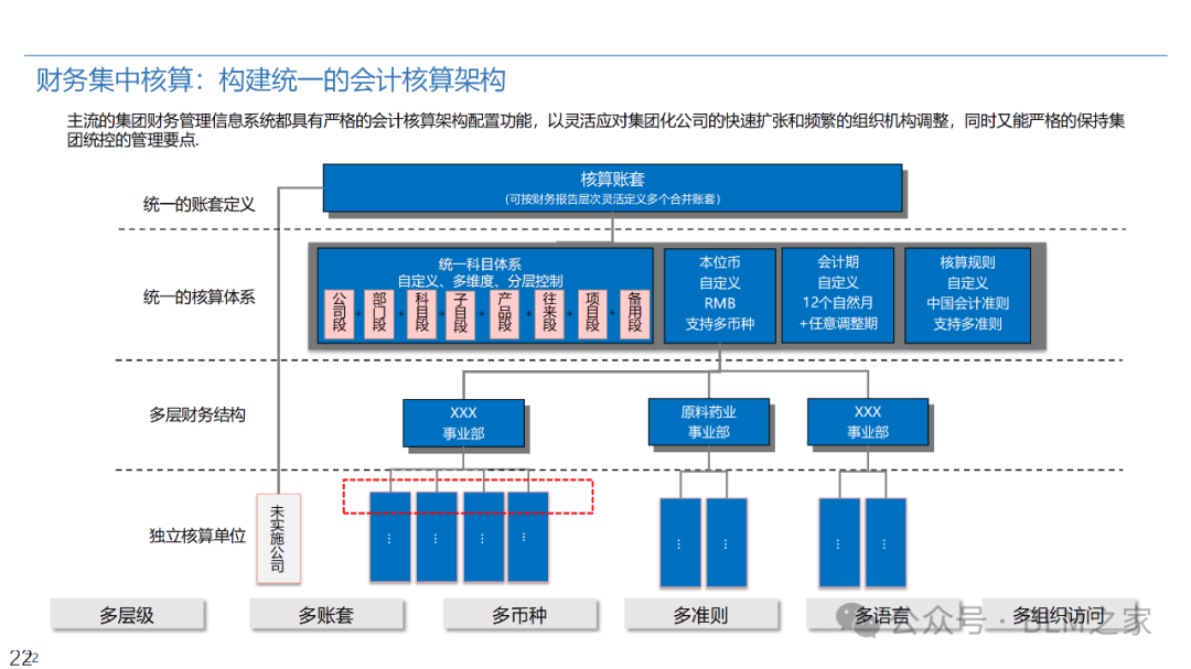 主流的集团财务管理信息系统都具有严格的会计核算架构配置功能,以灵活应对集团化公司的快速扩张和频繁的组织机构调整,同时又能严格的保持集团统控的管理要点.