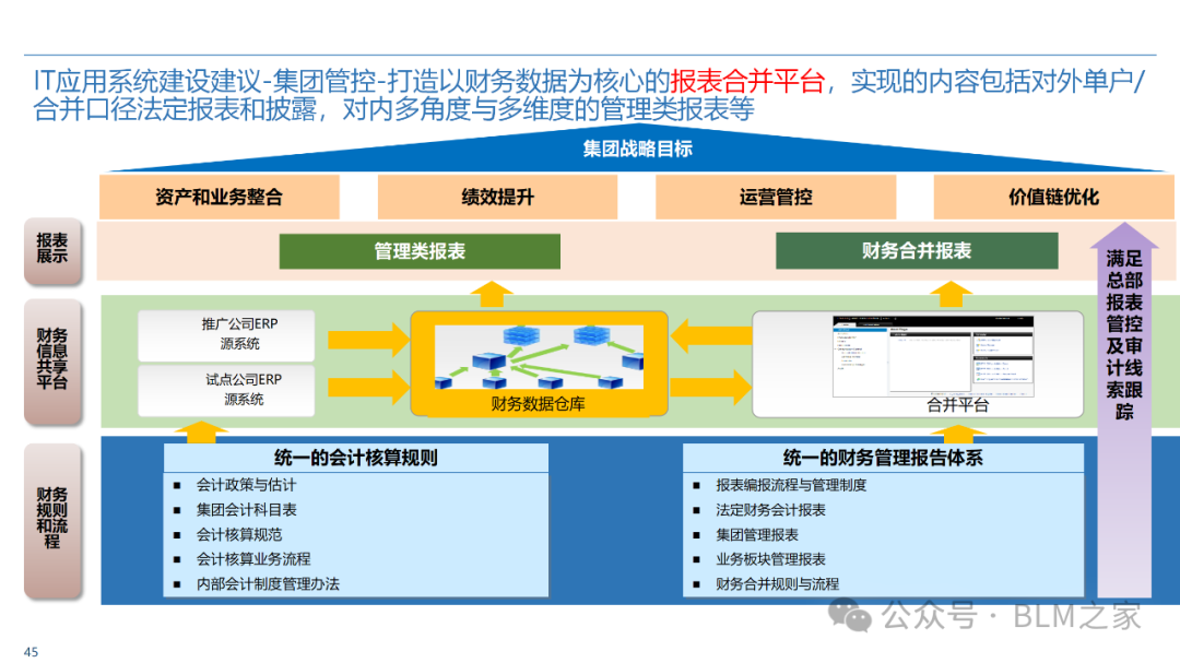 围绕内部管理和外部报告的要求,建立有效的报表体系,满足不同口径、不同层次的分析需求,并为集团的管理决策提供支持。