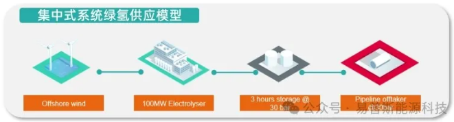 集中式系统绿氢供应模型是氢气与可再生能源和终端用户(即,与需求方直接连接)共同位点。这种供应模型预计适用于位于工业中心的生产商,这些中心可以同时获得可再生能源和大量的氢气需求。