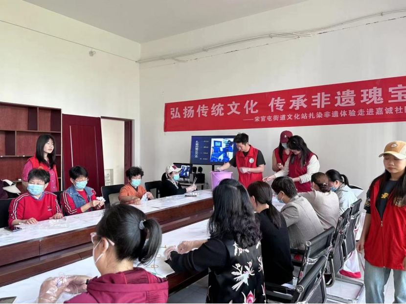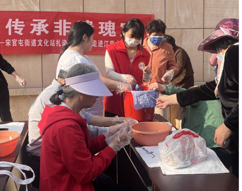 为进一步推动“百万大学生进社区”工作走深走实,引导大学生在社会实践中弘扬中华优秀传统文化、发扬志愿服务精神、发挥专业特色优势,同时丰富社区居民的业余文化生活,近日,纺织服装学院志愿服务队分别赴嘉诚社区、江南水郡社区、刘集社区开展“非遗传承,魅力扎染”志愿活动。