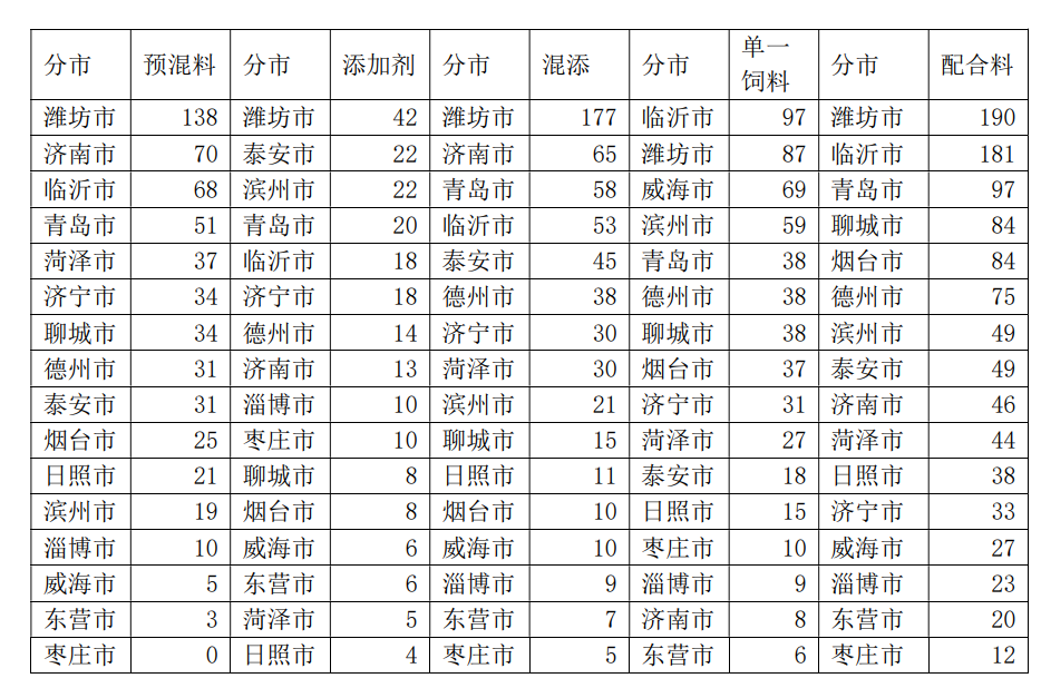 3、截至2024年4月全省分市饲料生产许可证数量排序。