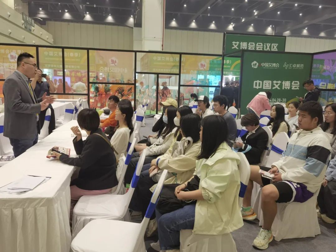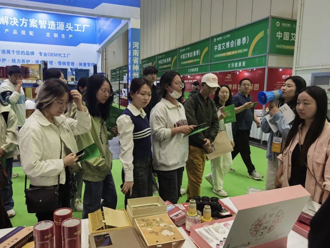 在艾博会现场,学生们有序参观各个展区,与参展商进行互动交流,近距离了解艾草产业的最新成果和创新技术,感受艾灸文化的魅力。同时,作为省级实践教学基地,汇卓公司和学院为了让同学们对展会有更加深入的认识,安排了大一同学在不同岗位参与志愿者服务。