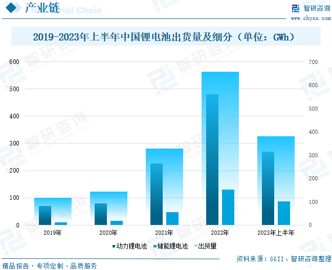 锂电池因其高效率、高能量密度和高电压等优点,为新能源物流车的高性能提供了强有力的支持,在新能源物流车等新能源领域应用广泛。新能源物流车与普通电动车相比,所需要的电池性能表现更高,确保电池支撑更大的负载需求,如更大的载重量和更长的行驶里程等。近年来,政府对新能源汽车和可再生能源的推广给予了广泛的支持和鼓励。通过制定购置补贴、免税政策、建设充电网络等措施,政府鼓励消费者购买和使用新能源汽车,提高了新能源动力锂电池的需求。2023年上半年,我国锂电池市场需求持续增长,相关数据显示,2023年上半年,我国锂电池出货量为380GWh,较上年同期增长36%,其中动力锂电池出货量为270GWh,较上年同期增长33%;储能锂电池出货量为87GWh,较上年同期增长67%。锂电池出货量的持续增加,有望带动新能源物流车销量增加。