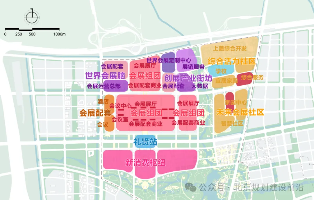 包括会展组团;会展配套组团(世界会展脑、创展产业街坊);生活配套组团(综合活力社区、未来会展社区)