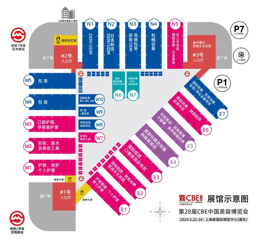 第28届CBE中国美容博览会展馆示意图+品类分布图↓