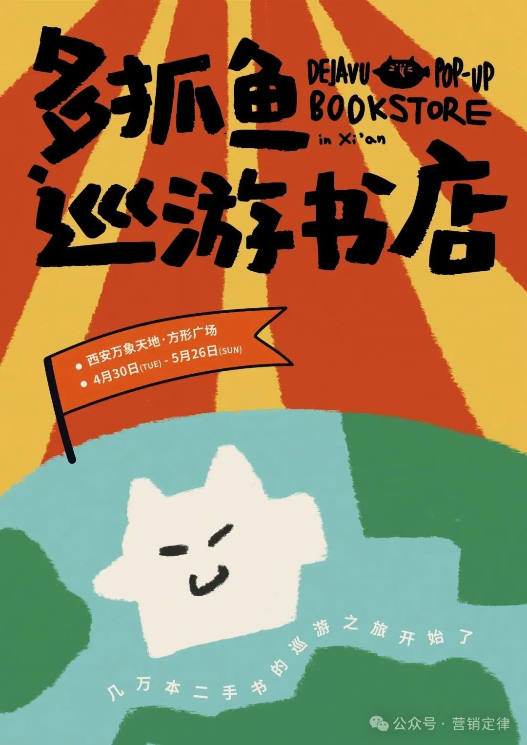 4 月 30 日-5 月 26 日,多抓鱼于西安万象天地开启「巡游书店」第一站。现场不仅有两万多本精品二手书,品牌还在现场搭建了一个小小的工厂翻修生产线,展现翻新二手书的本领。未来,巡游书店还将可能去到成都、杭州、广州、重庆等更多城市。