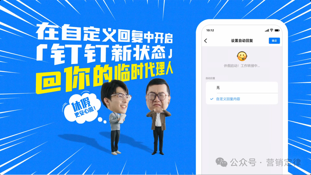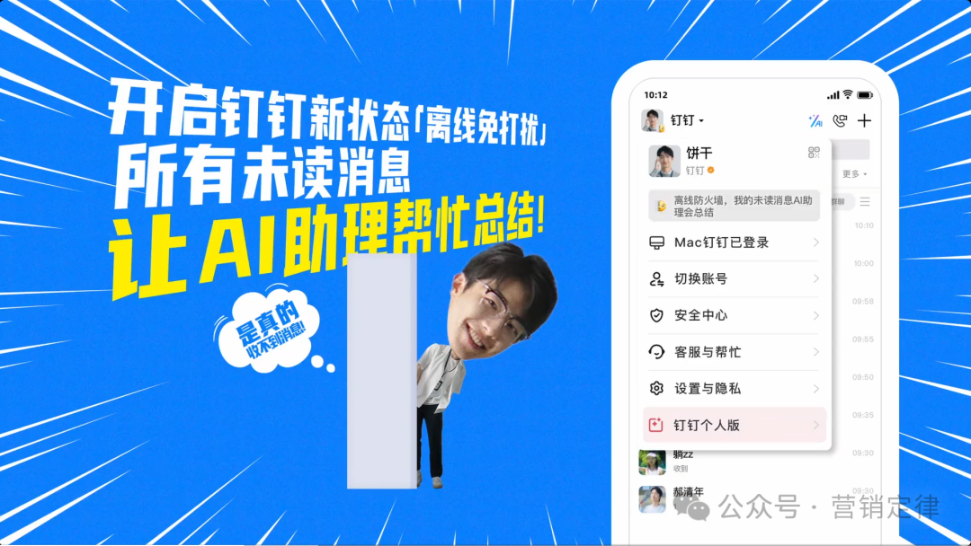 当代青年需要的不是鸡血,而是感同身受的理解。钉钉在影片中再现了几个职场中频繁出现的场景——「周末被领导催促加班」「请假了也要继续工作」「以奖励为名划分职场等级」,并让主角拒绝这些离谱的规定,从而引出钉钉在近日更新的三大功能——「离线免打扰」「AI 临时代理人」以及「各种吐槽状态」,帮助青年职场人更好地在工作中找回自我。