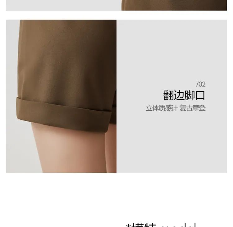 6.翻边脚口:更添层次感,形成立体建筑感裤型,更加复古摩登
