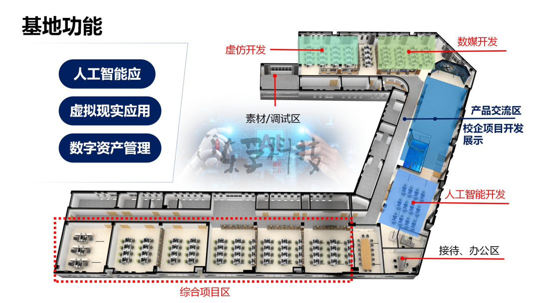 另设“智慧城市公共实践基地”,开展信息技术科普、职业认知、实践教学、师资培训、实习实训、创业孵化工作;同时围绕职业教育教学开展数智赋能、学术交流以及成果转化建设。