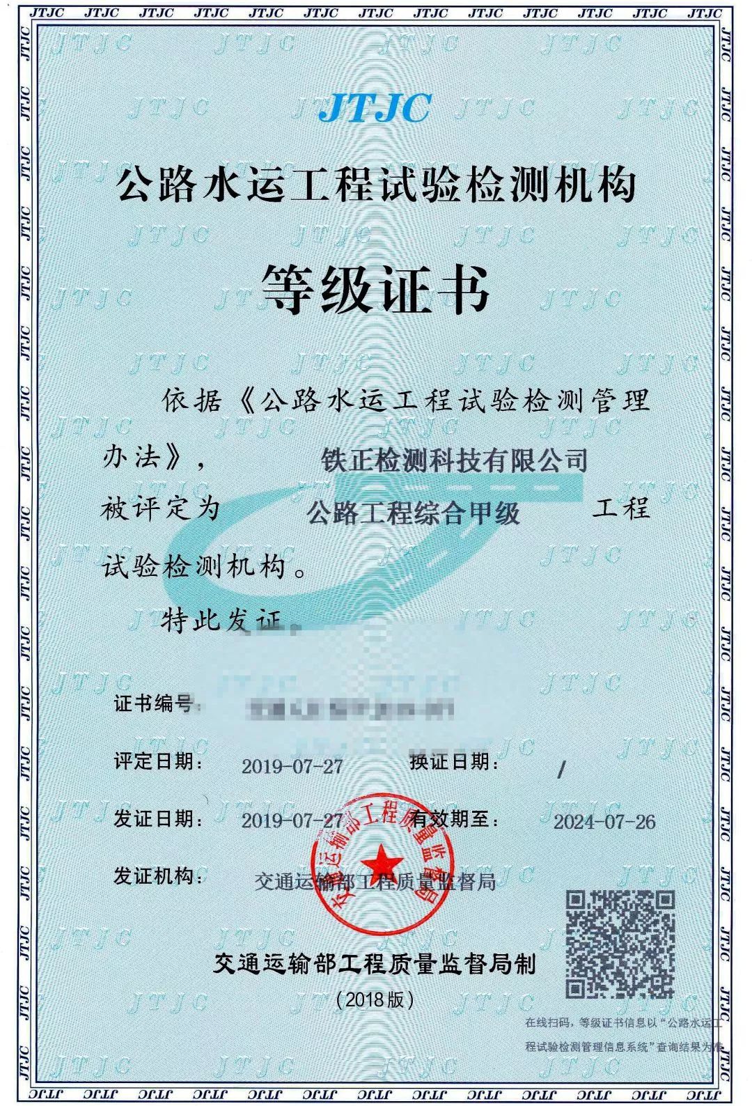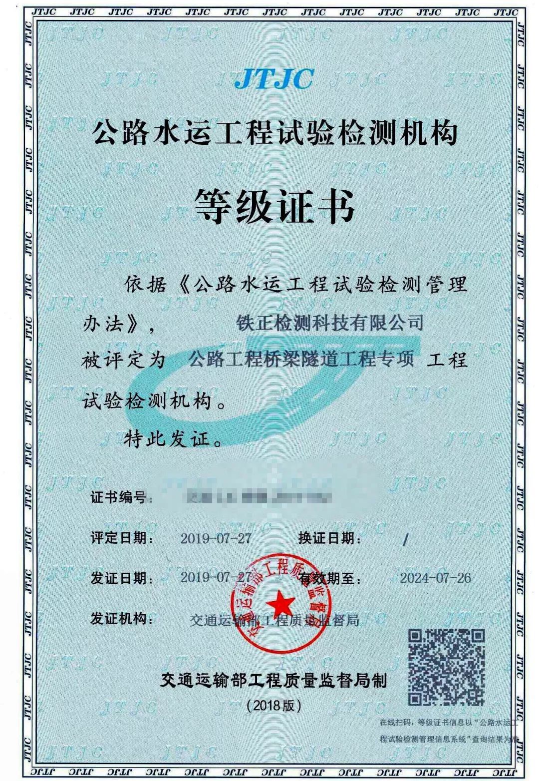 经过评审,专家组认为我公司的管理体系运行有效,试验检测人员数量和专业配置符合等级标准要求,仪器设备使用功能保持良好,环境条件可控,具备了公路工程综合甲级和桥隧专项资质等级标准要求。