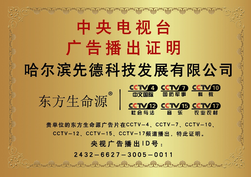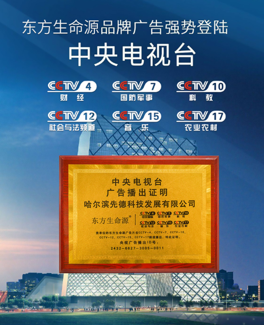 东方生命源|荣登CCTV六大频道黄金时段循环展播