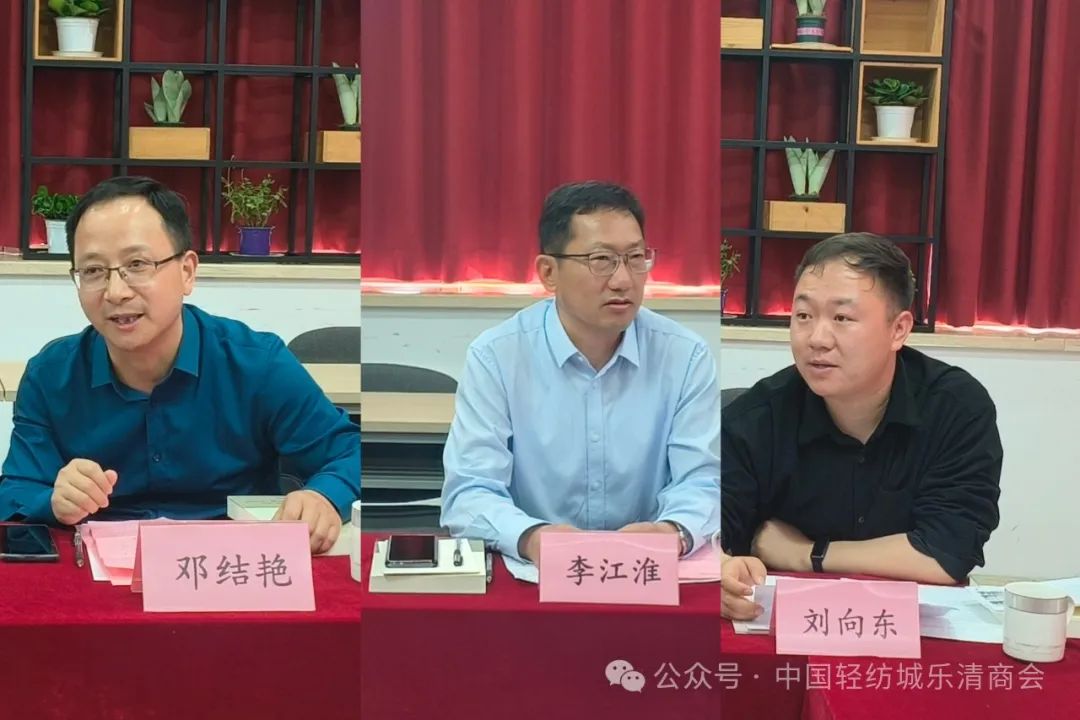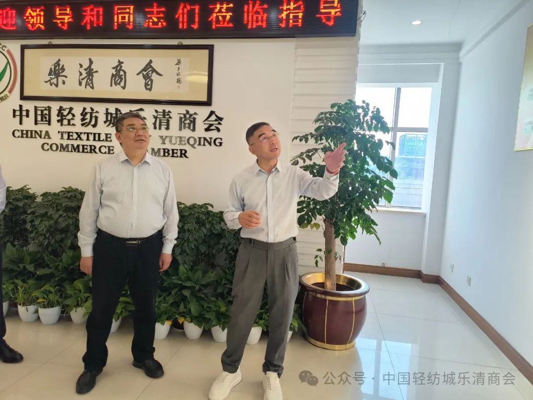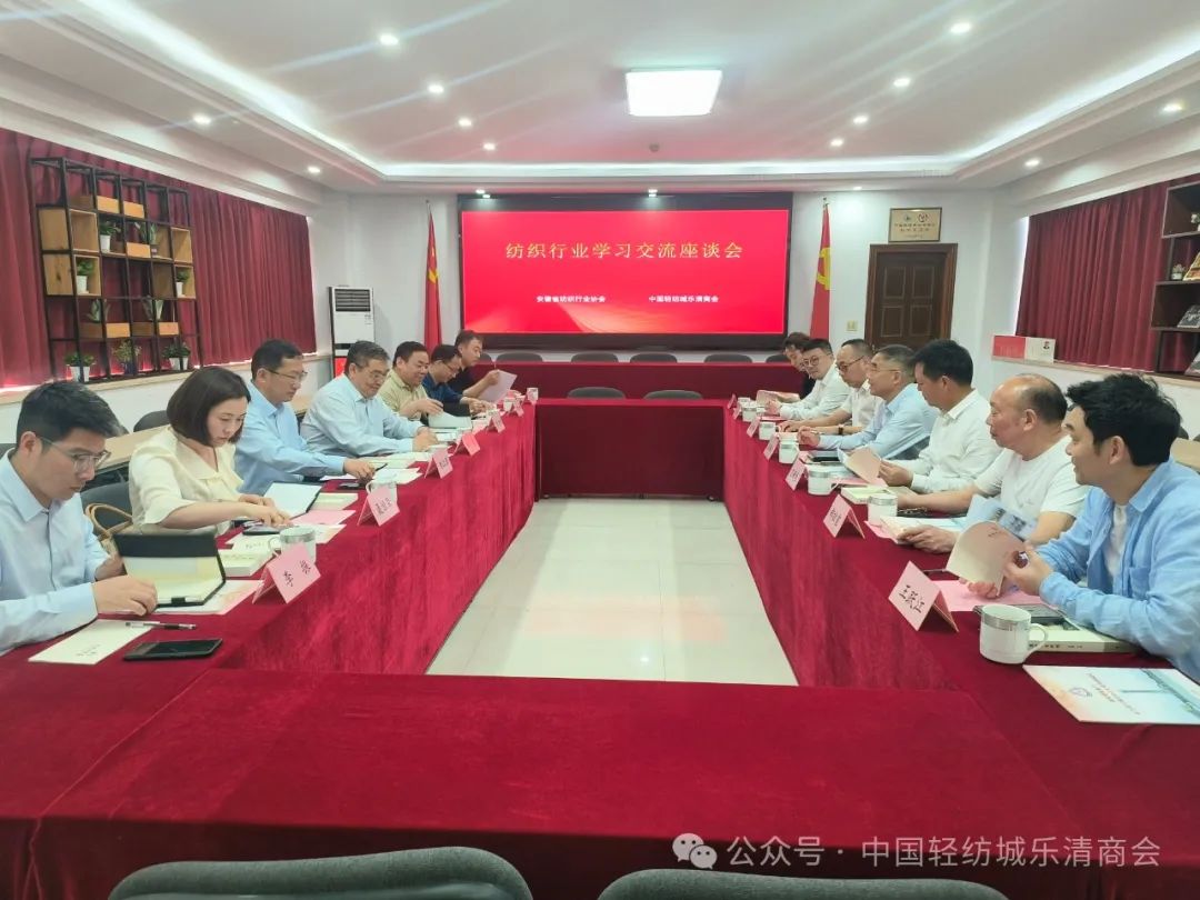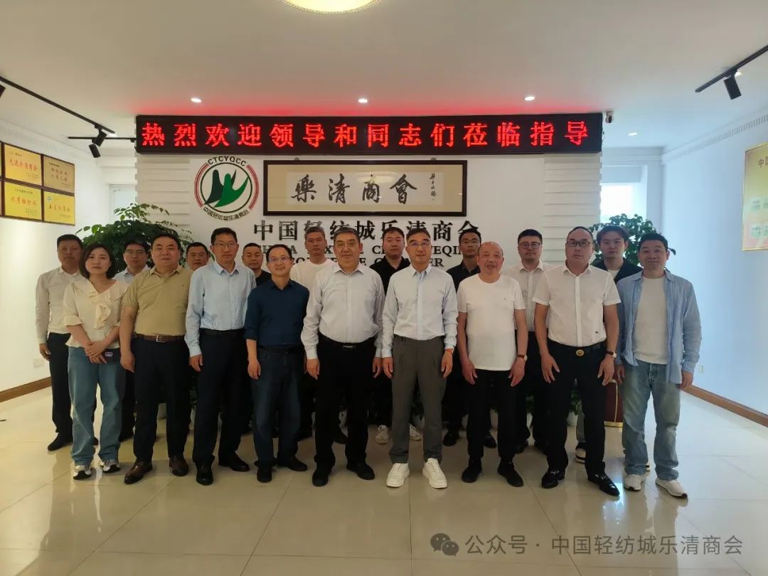 为推动浙皖两省纺织服装产业交流合作,5月6日,安徽省纺织行业协会执行会长叶梁携安徽省望江县、利辛县、定远县纺织服装产业集群地有关县镇部门负责人赴中国轻纺城乐清商会考察交流,乐清商会党委副书记、常务副会长王锦汀主持接待,常务副会长王新生、林贤存,石帆分会会长郑祖宣,虹桥分会会长王石建,值班会长王跃江、管哲弘等参加。