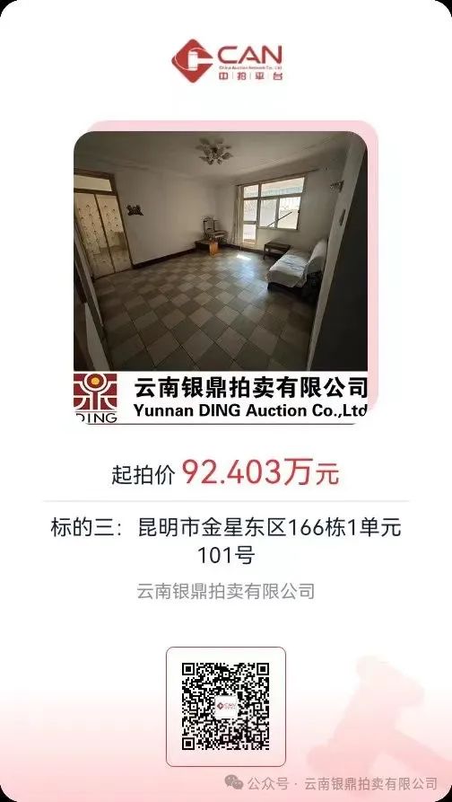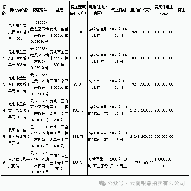 受委托并根据相关规定,我公司将对云南省投资控股集团有限公司住宅、商铺、办公楼一批面向社会依法进行公开拍卖。本批标的已于2024年4月29日在云南省产权交易所集团有限公司(以下简称云交所)对外公开挂牌转让,报名截止时间2024年5月28日17:00时,相关事宜公告如下: